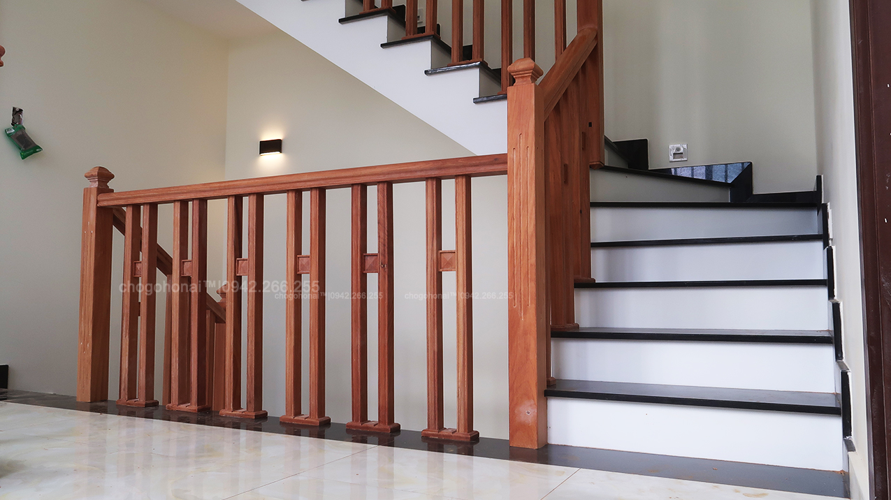 CẦU THANG GỖ GÕ ĐỎ | SONG ĐÔI
