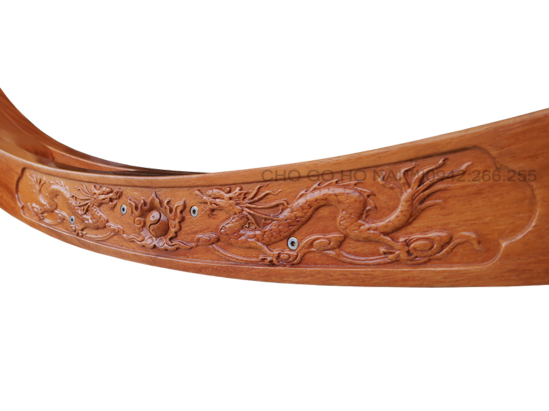 Chiếc khung võng được làm bằng gỗ Gõ Đỏ mẫu này có Điêu Khắc hình Rồng Chầu Nguyệt và sử dụng cây đẹp, đặc liền nguyên khối có bông vân đẹp kích thước dày dặn tạo độ vững chắc tuyệt đối.
